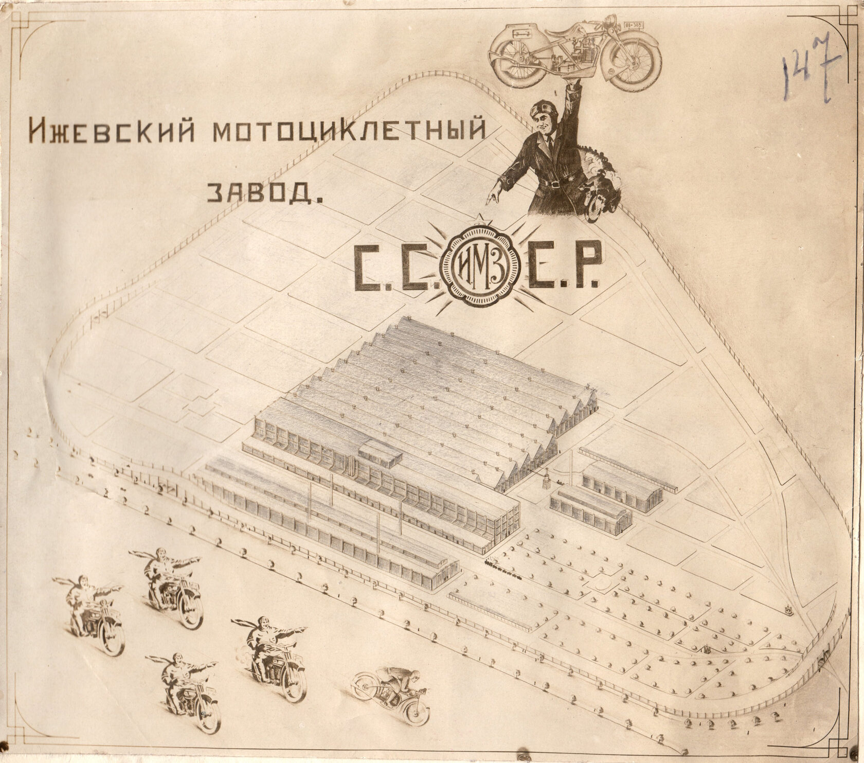 Эскизный проект Ижевского мотоциклетного завода. Апрель 1928 г. ГКУ «ЦГА УР». Ф. Р-543. Оп. 15. Д. 435. Л. 147.